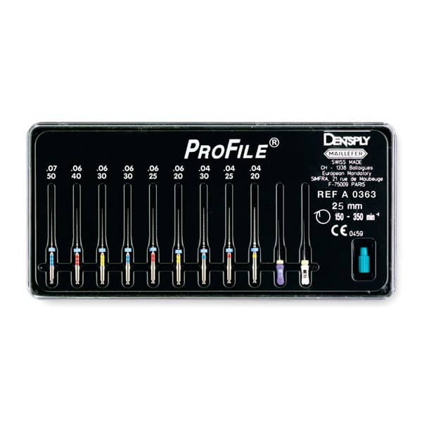 Set PROFILE + ORIFICE SHAPERS caja 9 Unidades.+ 3 Orifice Shapers: 1, 2 y 3.+ PROFILE .06: 20, 25 y 30.+ PROFILE .04: 20, 25 y 30.+ Lima K Nº 10.+ Lima Flexofile Nº 15.+ Mandril.